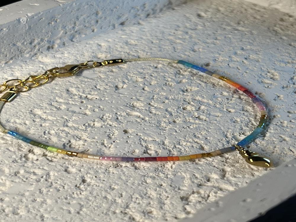 خلخال خيط مع فصوص ملونه يتدلى منه شكل بحري بلون الذهبي و قفل ذهبي مصنوع من الستانليس ستيل